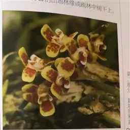 短距槽舌兰 Z. H. Tsi):茎很短,长1-2厘米,具数枚密生的叶。叶肉质或厚革质,二列,斜立…