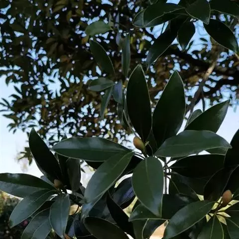 乐东拟单性木兰 常绿乔木,高达30米,胸径30厘米,树皮灰白色;当年生枝绿色。叶革质,狭倒卵状椭圆形、倒卵状椭圆形或狭椭圆形,长6-11厘米,宽2-3.5 (-5) 厘米,先端尖而尖头钝,基部楔形,或狭楔形;上面深绿色,有光泽;侧脉每边9-13条,干时两面明显凸起,叶柄长1-2厘米。