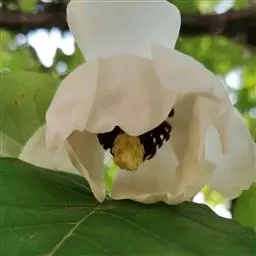 花杂性,雄花两性花异株;雄花:花被片9-14,外轮3-4片浅黄色,倒卵状长圆形,长2.5-3.5厘米,宽1.2-2.5厘米,内2-3轮白色,较狭少;雄蕊30-70枚,雄蕊长9-11毫米,花药长8-10毫米,花丝长1-2毫米,药隔伸出成短尖,花丝及药隔紫红色;有时具1-5心皮的两性花、雄花花托顶端长锐尖、有时具雌蕊群柄,两性花:花被片与雄花同形而较小,雄蕊10-35枚,雌蕊群卵圆形,绿色,具雌蕊10-20枚。
