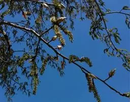 乔木,高达30米。树冠阔卵形;树皮初光滑,灰绿色,老时暗灰色,沟裂。枝圆柱形,有时具角棱,幼时橄榄绿色,后变为橙黄色至灰黄色,无毛。芽长圆锥形,无毛,紫褐色或黄褐色,多粘质。