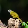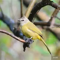 黄绿鹎,小型鸟类,体长19-22厘米。额至头顶暗褐具灰色羽缘,眼先黑色,…