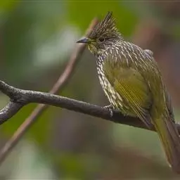 纵纹绿鹎,是鹎科鹎属的一种动物,是体型中等大小鸟类,体长20-24厘米。头绿褐色具明显的冠羽,…