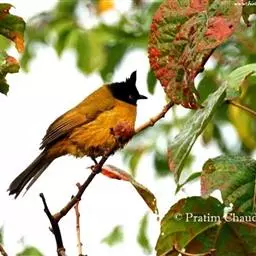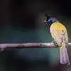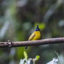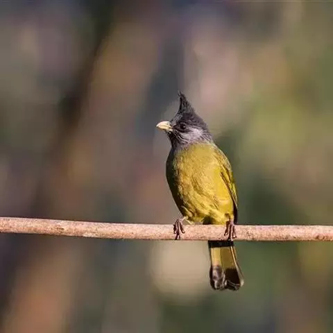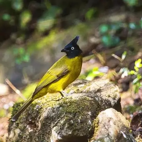 黑冠黄鹎:体长18-21厘米,是一种中等体型偏黄色鹎。整个头、颈、颏、喉黑色,头顶有显著直立的羽冠,…