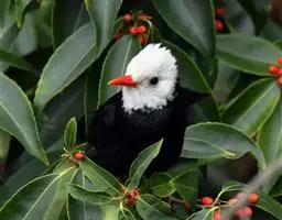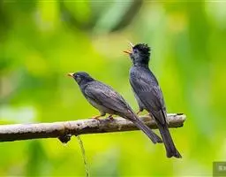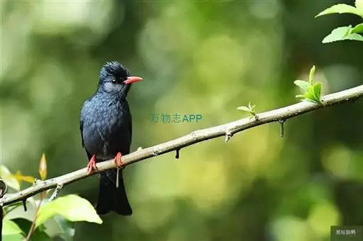 黑短脚鹎(学名:Hypsipetes madagascariensis):中型鸟类,体长22-26cm。嘴鲜红色,脚橙红色,尾呈浅叉状。羽色有两种色型,一种通体黑色,另一种头、颈白色,其余通体黑色。野外特征极明显,容易识别。