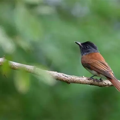 栗背短脚鹎,体长18-22厘米。上体栗褐,头顶和羽冠黑色。背栗色、翅和尾暗褐色具白色或灰白色羽缘。…