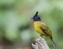 凤头雀嘴鹎:属小型鸟类,体长18-22厘米。嘴粗短、呈象牙色或乳黄色,前额和脸灰色,头顶黑色,…