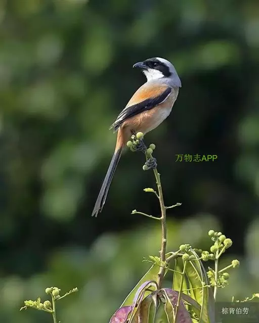 棕背伯劳 是伯劳中体形较大的种类。体长达240毫米左右。主要特征是头顶到上背部为灰色,向后渐沾棕色;上体其余部分为红棕色;两翅和尾均黑色,下体大部为白色。为我国南方常见的一种伯劳。栖息于开阔的平原与低山一带,常在田园、果园及树丛间活动。棕背伯劳与伯劳属其他同类一样,性情凶猛,具有储存猎物的行为。 嘴爪均强健有力,善于捕食昆虫、鸟类及其他动物,甚至能击杀比它自己还大的鸟,如鹧鸪之类。