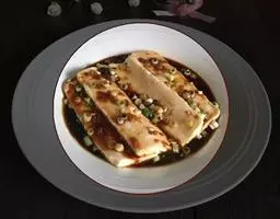 山珍豆腐是一道川菜,主料有豆腐,调料有大葱、姜、植物油、酱油、料酒。