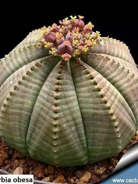 布纹球,是大戟科大戟属植物。植株小球形,表皮灰绿色,中有红褐色,…