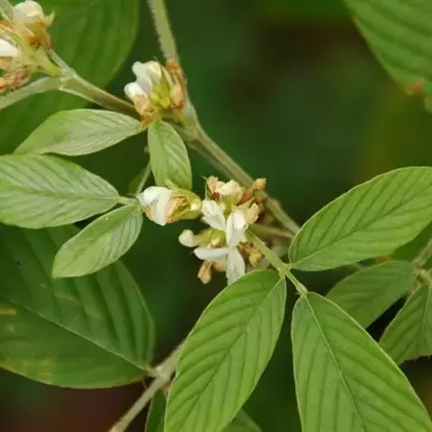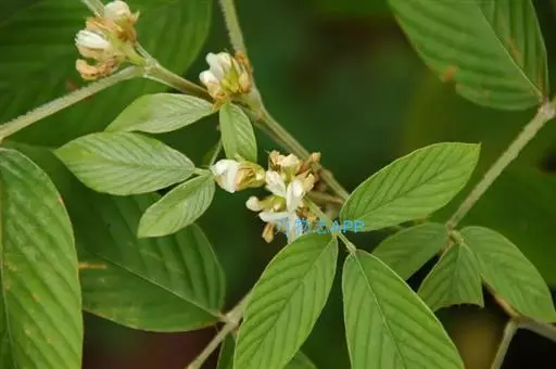 花序腋生,伞形花序有花20-30朵;苞片披针形,花梗不等长,密被贴伏丝状毛;花萼长5-9毫米,被贴伏丝状毛,萼筒长1.8-3毫米,下部1裂片与萼筒近等长,其余比萼筒稍短;花冠白色或淡黄色,长约9毫米,旗瓣宽椭圆形,具短瓣柄,冀瓣和龙骨瓣长圆形,基部具瓣柄;雄蕊长8-12毫米;雌蕊长7-14毫米,花柱长7-12毫米,子房被毛。荚果长2-2.5厘米,稍弯曲,有荚节3-6,被贴伏丝状毛;种子椭圆形,长2.5-3.5毫米,宽2-2.5毫米。花期8-10月,果期10-12月。