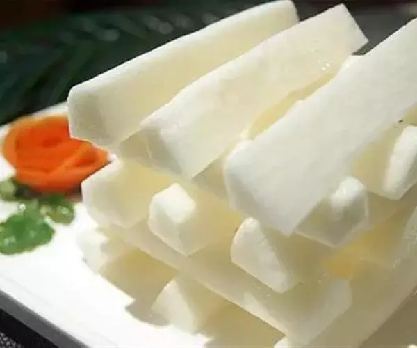 蛋黄焗山药是用山药、鸡蛋、面粉、清水、咸蛋黄、盐制作而成的菜品。
