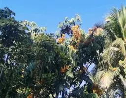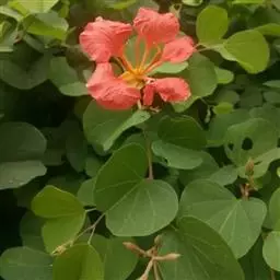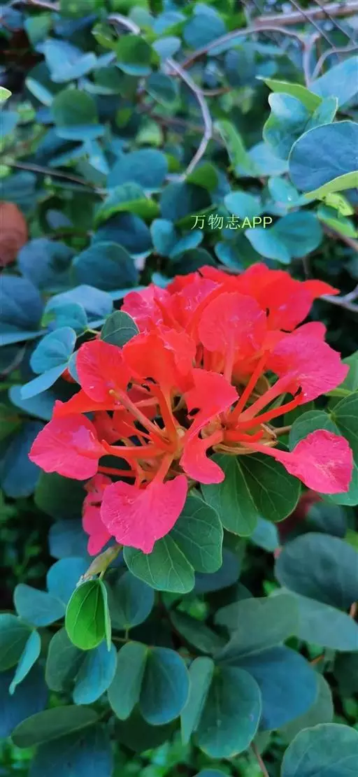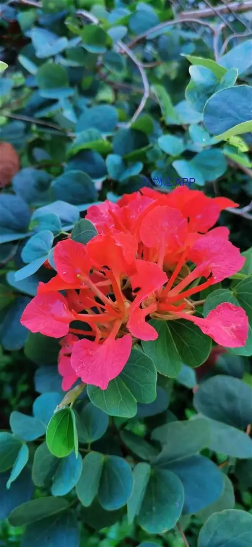 嘉氏羊蹄甲枝条细软,枝极平整,向四周匍匐伸展,冠幅常大于高度。叶呈双肾型,十分特别。花序簇生枝头,花大量,颜色橙红似火,花姿花色美妍悦目。
