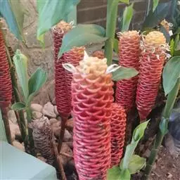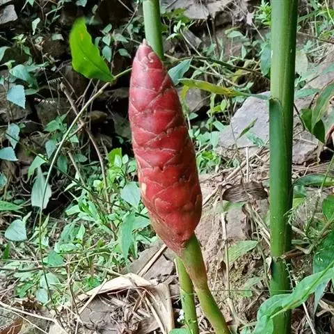 珊瑚姜是姜科、姜属植物。株高近1米。叶片长圆状披针形或披针形,长20-30厘米,宽4-6厘米,…