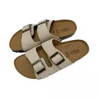 就是在EVA底外包一层皮革后所合成的一种工艺。外缝鞋(如图)的底也大部分是采用这个材料。同点塑布,EVA,布底一样,PVC底也大部分用在日韩拖鞋中。大概因为日韩大部分家庭都是木地板和地毯,这种底的 拖鞋基本不分左右,很方便穿着更换。所以这种底在日韩最为流行,不会沾染灰尘,脏了只要在布上蹭两下就干净了。不过对中国人来说就不怎么好接受了,其实他的脚感还是比较生硬的。
