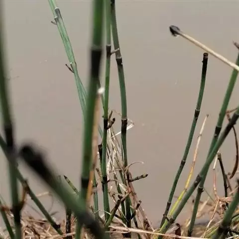 笔管草 笔管草、纤弱木贼、台湾木贼 属于大中型植物 。根茎直立和横走,黑棕色,节和根密生黄棕色长毛或光滑无毛。地上枝多年生。枝一型。高可达60厘米或更多,中部直径3-7毫米,节间长3-10厘米,绿色,成熟主枝有分枝,但分枝常不多。主枝有脊10-20条,脊的背部弧形,要一行小瘤或有浅色小横纹;鞘筒短,下部绿色,顶部略为黑棕色;鞘齿10-22枚,狭三角形,上部淡棕色,膜质,早落或有时宿存,下部黑棕色革质,扁平,两侧有明显的棱角,齿上气孔带明显或不明显。侧枝较硬,圆柱状,有脊8-12条,脊上有小瘤或横纹;鞘齿6-10个,披针形,较短,膜质,淡棕色,早落或宿存。孢子囊穗短棒状或椭圆形,长1-2.5厘米,中部直径0.4-0.7厘米,顶端有小尖突,无柄。