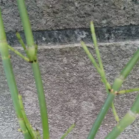 节节草属多年生草本。根茎黑褐色,生少数黄色须根。茎直立,单生或丛生,高达70厘米,径1~2毫米,灰绿色,肋棱6~20条,粗糙,有小疣状突起1列;沟中气孔线1~4列;中部以下多分枝,分枝常具2~5小枝。叶轮生,退化连接成筒状鞘,似漏斗状,亦具棱;鞘口随棱纹分裂成长尖三角形的裂齿,齿短,外面中心部分及基部黑褐色,先端及缘渐成膜质,常脱落。孢子囊穗紧密,矩圆形,无柄,长约0.5~2厘米,有小尖头,顶生,孢子同型,具2条丝状弹丝,十字形着生,绕于孢子上,遇水弹开,以便繁殖。