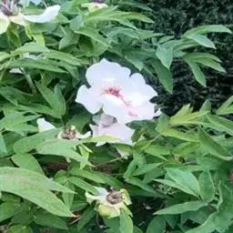 与牡丹的区别:花瓣内面基部具深紫色斑块。叶为二至三回羽状复叶,小叶不分裂,稀不等2-4浅裂。花大,花瓣白色。