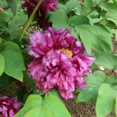 落叶小灌木,高1-1.5米;二回三出复叶,小叶常3-5裂;初夏开白色、红色或紫色花,花单生大型;雌蕊生于肉质花盘上,密被细毛。