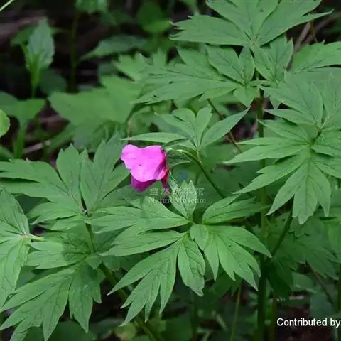 与牡丹的区别:叶背面和叶轴均生短柔毛,顶生小叶宽卵圆形或近圆形,长4-6厘米,宽3.5-4.5厘米,3裂至中部,裂片再浅裂。