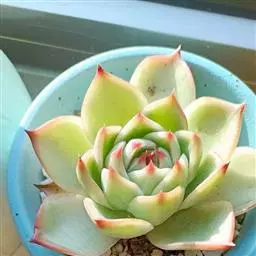吉娃莲,景天科拟石莲花属,别名:吉娃娃,吉娃莲,植株小型,无茎的莲座叶盘非常紧凑。卵形叶较厚,带小尖,…