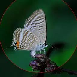 红珠灰蝶翅白色,半透明羽毛状。前翅及前缘布各有一层橙色鳞片。中室中部及横脉处各有不同大小黑色斑。…
