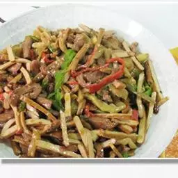 京酱肉丝,是一道知名度很高的菜肴,它是北京菜中的经典代表菜之一。制作时选用猪瘦肉为主料,辅以甜面酱…