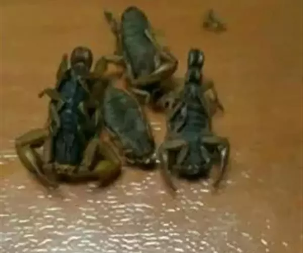 3、休眠期:从立冬到雨水(约120~130天),蝎子的生长发育完全停顿,处于休眠蜷伏、完全不吃不喝的状态。