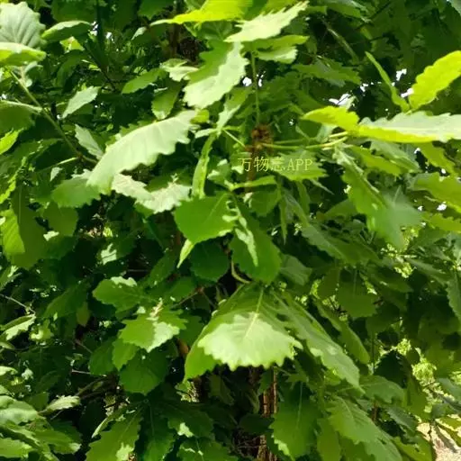 蒙古栎属落叶乔木,高达30米,树皮灰褐色,纵裂。幼枝紫褐色,有棱,无毛。顶芽长卵形,微有棱,芽鳞紫褐色,有缘毛。叶片倒卵形至长倒卵形,长7-19厘米;宽3-11厘米,顶端短钝尖或短突尖,基部窄圆形或耳形,叶缘7-10对钝齿或粗齿,幼时沿脉有毛,后渐脱落,侧脉每边7-11条;叶柄长2-8毫米,无毛。