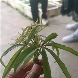 小苗出土后1个月可薄施腐熟人畜粪尿(腐熟人畜粪尿与水比例为1:20)或0.1%的复合肥水肥。4-5片叶可移植营养袋,营养袋的规格一般采用16厘米x16厘米,基质为20%火烧土加80%沙质壤土,最好选在阴雨天或下午移苗,种好后淋足定根水,再搭架用70%遮光网遮荫,待小苗恢复生长后去除遮光网。约移植1个月后即可施肥,一般施用复合肥或尿素,或两种肥交替施用,每15天施1次,先稀后浓,浓度一般为0.1%-0.3%,8-9月适当增施钾肥,浓度为0.3%,促其木质化,有利小苗过冬。