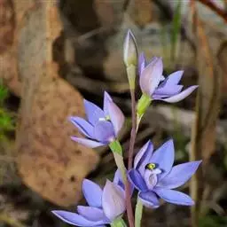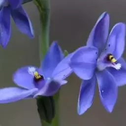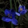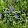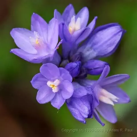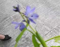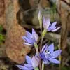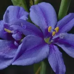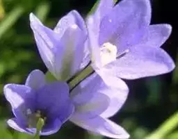 花序梗短,长1~1.5厘米,基部有1披针形苞片。花序在花期直立,果期下弯,花通常3~5朵(稀有10余朵),或有1~3朵,蓝色。花被片卵状披针形或长圆形,长1~1.5厘米,花梗长到1厘米,雄蕊6枚,其中1枚较大,花药长圆形,其余5枚较小;花丝丝状。