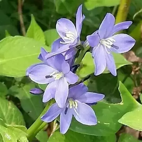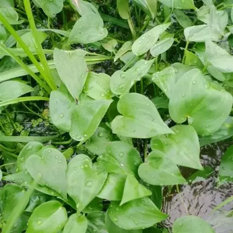 鸭舌草:又名水锦葵。别名水玉簪、肥菜、合菜。雨久花科雨久花属植物鸭舌草。全国的水稻种植区,以及长江流域及以南地区均有分布。 鸭舌草为雨久花科植物,性味苦凉,具有清热解毒的功效。治痢疾、肠炎、急性扁桃体炎、丹毒、疔疮等。