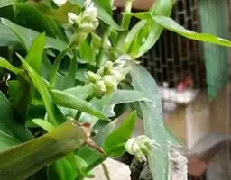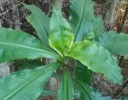 全缘、具弧状脉。叶柄长10~20厘米,基部扩大成开裂的鞘。鞘长2~4厘米,顶端有舌状体,长约0.7~1厘米。总状花序从叶柄中部抽出。该处叶柄扩大成鞘状。