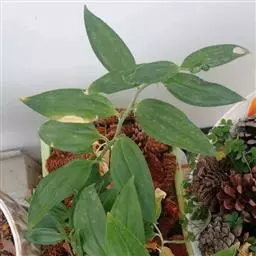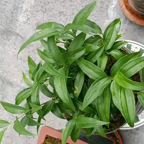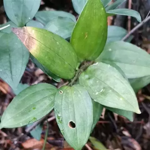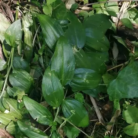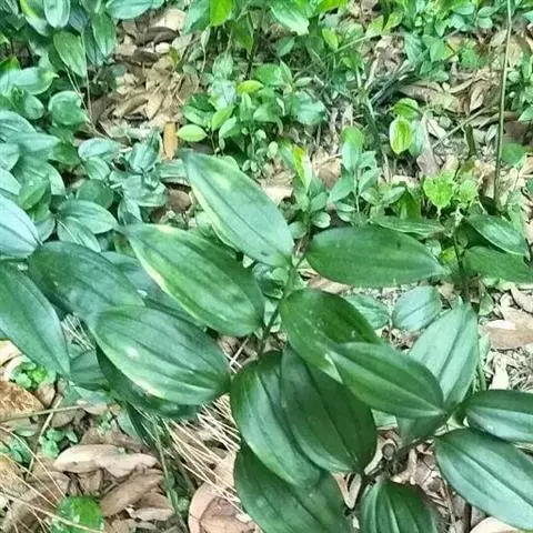 根状茎圆柱状,粗3-10毫米。茎高10-40厘米。叶厚纸质,卵形、卵状披针形或卵状椭圆形,长3-8厘米,宽1-4厘米,先端渐尖或稍尾状,基部通常近截形或略,带心形,具柄,两面无毛。