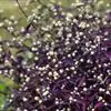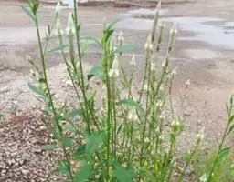 总状花序腋生或顶生,单一或疏生2~4个分枝,花序轴长10~30cm,花数十朵至200余朵;花梗长2~4mm,基都有一披针形、先端锐尖的苞叶;花基合生呈杯状的苞片2,其上有与其交互对生的宽卵形或椭圆形小苞片2枚,较花被片短;花被片卵形或椭圆形,长约3mm,宽约2mm,白色;雄蕊比花被长,花丝基部宽而略联合,在蕾中时外折;子房近球形,上位,花柱上部3裂,柱头乳头状。花芳香,开后变黑褐色,久不脱落。花虽两性,但通常不孕。果未见。花期6、7月起可开放半年。