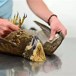 雌鸟似雄鸟,但头顶为栗褐色,具黑色纵纹,上体淡棕褐色,具暗褐色纵纹,下体颏、喉部中央具黄白色纵纹,颈至胸有淡褐色纵斑。