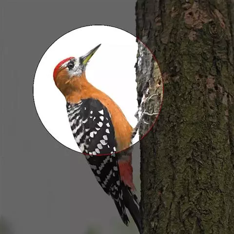红腹啄木鸟成年雄鸟头项有红帽,翅膀和上体是黑白相间的斑纹状羽毛,腹部有一片红羽毛。头亦大,但颈较长,…