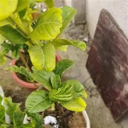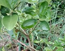 柚 乔木。嫩枝、叶背、花梗、花萼及子房均被柔毛,嫩叶通常暗紫红色,嫩枝扁且有棱。叶质颇厚,色浓绿,阔卵形或椭圆形,连冀叶长9-16厘米,宽4-8厘米,或更大,顶端钝或圆,有时短尖,基部圆,翼叶长2-4厘米,宽0.5-3厘米,个别品种的翼叶甚狭窄。