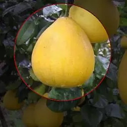 坪山柚:果椭圆形,两肩削,果顶近于平坦,蒂部有凸棱,果皮油胞大,凸起,海绵层及果肉均淡红色,果心空,肉爽脆,水分多,味清甜,酸份低。果期与文旦同。