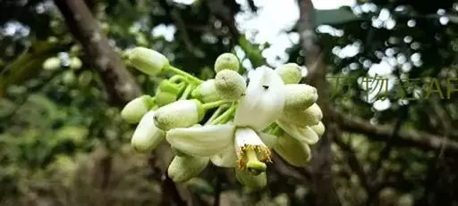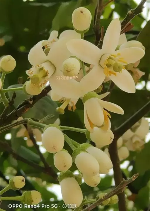 柚的结果枝多为花序果枝,即有叶花序果枝和无叶花序果枝两种类型。有叶花序果枝为带叶的结果枝,除顶端有花外,其他各叶腋也多着生花蕾,或在新梢顶端抽生一总状花序,有叶花序果枝花数4-8朵不等。无叶花序果枝上无叶或仅有1-2片极小叶片,枝上着生3-45朵花不等。