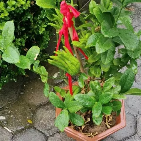 香橼为小乔木或灌木状;株高达5米;幼枝、芽及花蕾均暗紫红色;茎枝多刺,长达4厘米;单叶,…