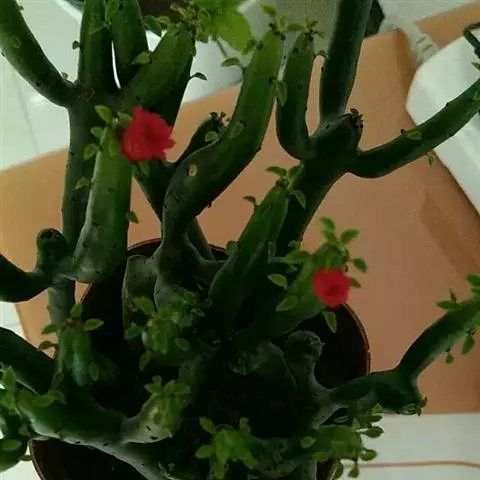 虎刺梅:别称铁海棠,是蔓生灌木植物。茎多分枝,长60-100厘米,直径5-10毫米,具纵棱,密生硬…