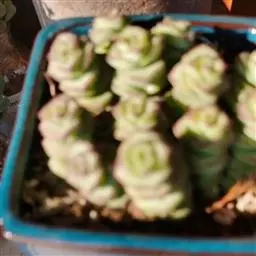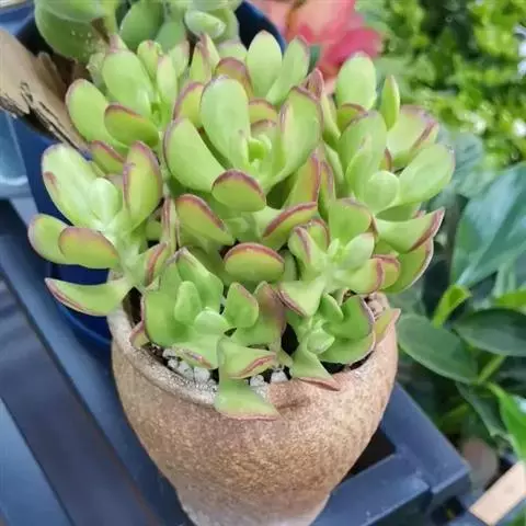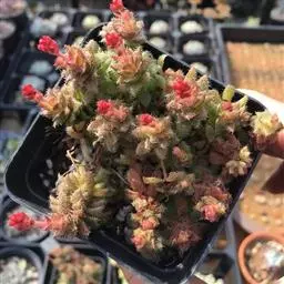 繁殖一般就是砍头,取健康有生长点的枝条,按照3至5厘米高左右一段剪下,晾干伤口扦插,也可以直接扦插在干的颗粒土中,几天后少量给水,是非常好繁殖的一个品种,叶片和叶片间容易长出很多小根。碰到合适的土壤就会把根牢牢扎在土里。