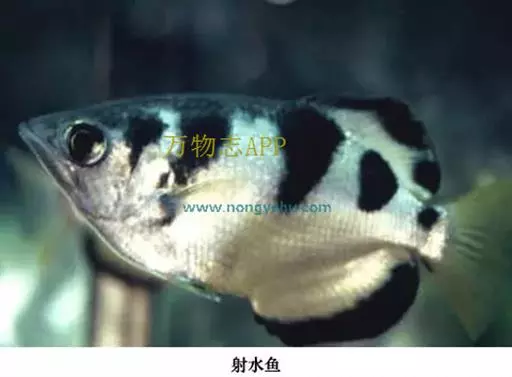 学名Toxotes chatareus:分布于斯里兰卡,印度,新几内亚和澳大利亚北部。喜欢比较高的盐分。条纹之间靠近背部的地方有明显的黑斑,很容易和普通射水鱼区分。