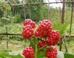 覆盆子为灌木,高1—2米;枝褐色或红褐色,幼时被绒毛状短柔毛,疏生皮刺。小叶3-7枚,长卵形或椭圆形,…