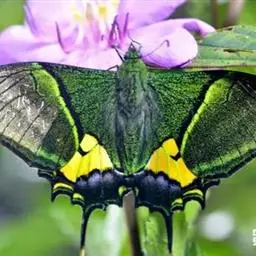 荧光裳凤蝶是凤蝶科裳凤蝶属的一种大型蝴蝶,该物种共有3个亚种。该蝶飞翔的时候姿态优美,前翅黑色,后…