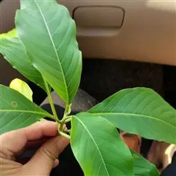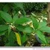 叶具柄,卵形、距圆形至卵状披针形,长9-15厘米,宽4.5-8.5厘米,顶端渐尖,基部阔楔形,下延,边全缘或微波状,侧脉每边6条,上面深绿色,背面淡绿色,侧脉在背面凸起,明显。