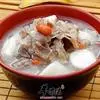 主料:羊肉800克,白菜头(洗净切成块)280克,水细粉丝260克,虾仁10克,羊骨,鱼。
