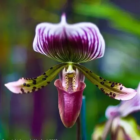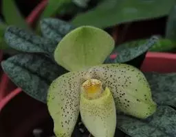 虎斑兜兰兰科,兜兰属地生或半附生植物。叶基生;数枚至多枚,叶片带形、革质。花葶从叶丛中长出,花苞片…
