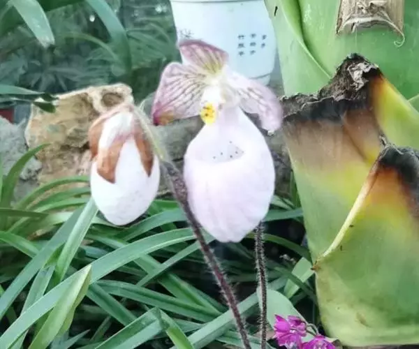 兜兰又名拖鞋兰,夏秋或临冬开花,花期最长达70余天。西南地区的兜兰叶片通常要厚实硬朗些,花色更为亮丽显眼,有更好的抗旱保水机制,在抗逆性新品种选育上具有非常高的利用价值。