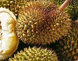 榴梿,是一种锦葵目、木棉科巨型的热带常绿乔木,叶片长圆,顶端较尖,聚伞花序,花色淡黄,果实足球大小…